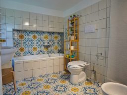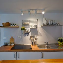 Ampio soggiorno con divano letto, cucina completamente attrezzata, poltrona letto, bagno con vasca e doccia e balconcini con vista sui caratteristici vicoli della città.